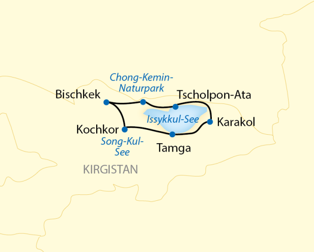 - Deutsch sprechende Reiseleitung ab/bis Bischkek laut Reiseverlauf