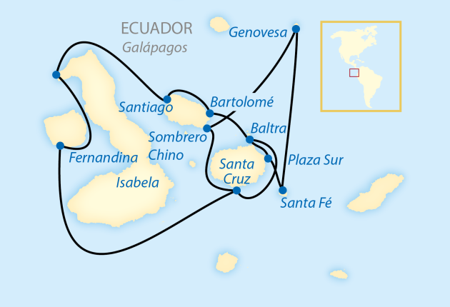- Galápagos-Kreuzfahrt (Exklusiv-Charter) mit dem Komfort-Expeditionsschiff Isabela II mit 8 Übernachtungen an Bord