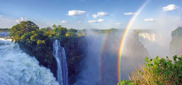 Nach dem Frühstück geht es für alle Gäste gemeinsam von Sambia zurück nach Victoria Falls. Von zahlreichen Aussichtspunkten blicken Sie auf die 1,7 km lange Absturzkante, an der die tosenden Wassermassen des Sambesi-Flusses die Victoria Fälle hinabrauschen. Ein kurzer Spaziergang führt zum Victoria Falls Hotel, von dessen Terrasse Sie den Blick hinüber zur Victoria-Falls-Brücke genießen. Wer möchte, bucht einen Helikopter-Flug über den Wasserfällen (zahlbar vor Ort). Am Nachmittag heißt Sie das Zugpersonal willkommen an Bord. (FA)