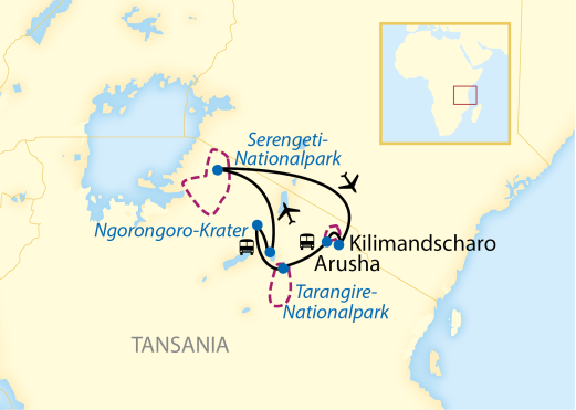 Nach Ihrem Frühstück im Serengeti Migration Camp bringt Sie ein Guide des Camps zur Flugpiste, wo Sie sich verabschieden. Anschließend erfolgt Ihr Linienflug von der Serengeti nach Arusha (z. B. mit Auric Air, ggf. einmotorig, Zwischenstopps möglich). Bitte beachten Sie die jeweiligen Gepäckbestimmungen: 15 – 20 kg Höchstgewicht in weichen Reisetaschen. Nach Ihrer Ankunft am Flughafen Arusha werden Sie von einem englischsprachigen Fahrer abgeholt und in nur ca. 10 Minuten zur Arusha Coffee Lodge gebracht. Dort genießen Sie ein Mittagessen. Im Anschluss erfolgt der Transfer (ca. 1 h) zum Kilimanjaro International Airport. Rückflug nach Deutschland. (FM)