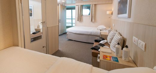 19 Classic-Kabinen (ca. 13 m²) mit großen Fenstern, individuell regulierbarer Klimaanlage, privatem Bad inkl. Dusche/WC, Haartrockner, Safe, Schreibtisch