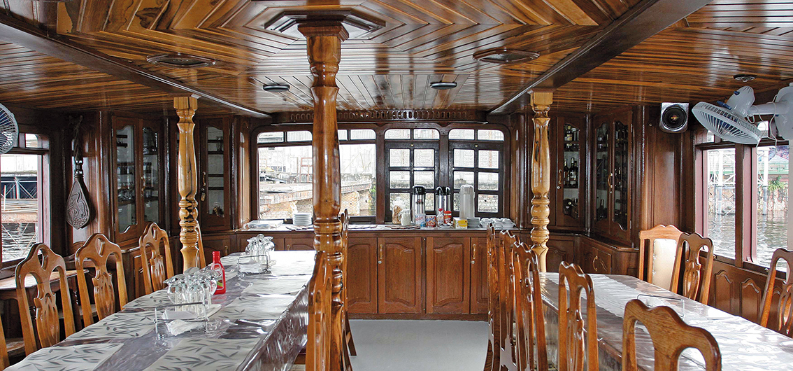 Das 27 m lange Schiff – benannt nach der bis heute hochverehrten Göttin des Wassers, der Flüsse und der Liebe – wurde mit wertvollen ein heimischen Hölzern gebaut und mit viel Liebe zum Detail eingerichtet.
